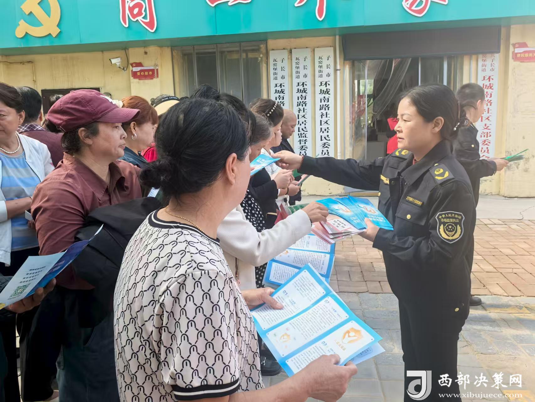 子长市瓦窑堡街道市场监管所正在环城南社区开展药品平安科普宣传勾当现场,将专业的用药指点办事送到居平易近“口”。